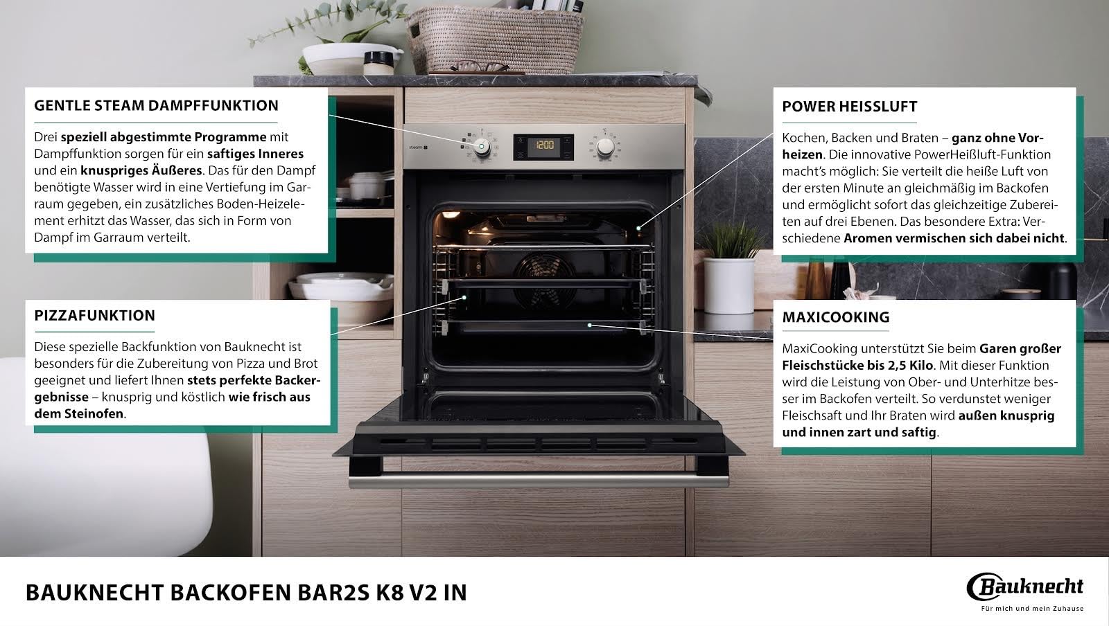 Einzelheiten: Bauknecht BAR2S K8 V2 IN Einbau-Dampfbackofen/A+/71 L/Gentle Steam/Power-Heißfluft/Maxi Cooking [Energieklasse A+]