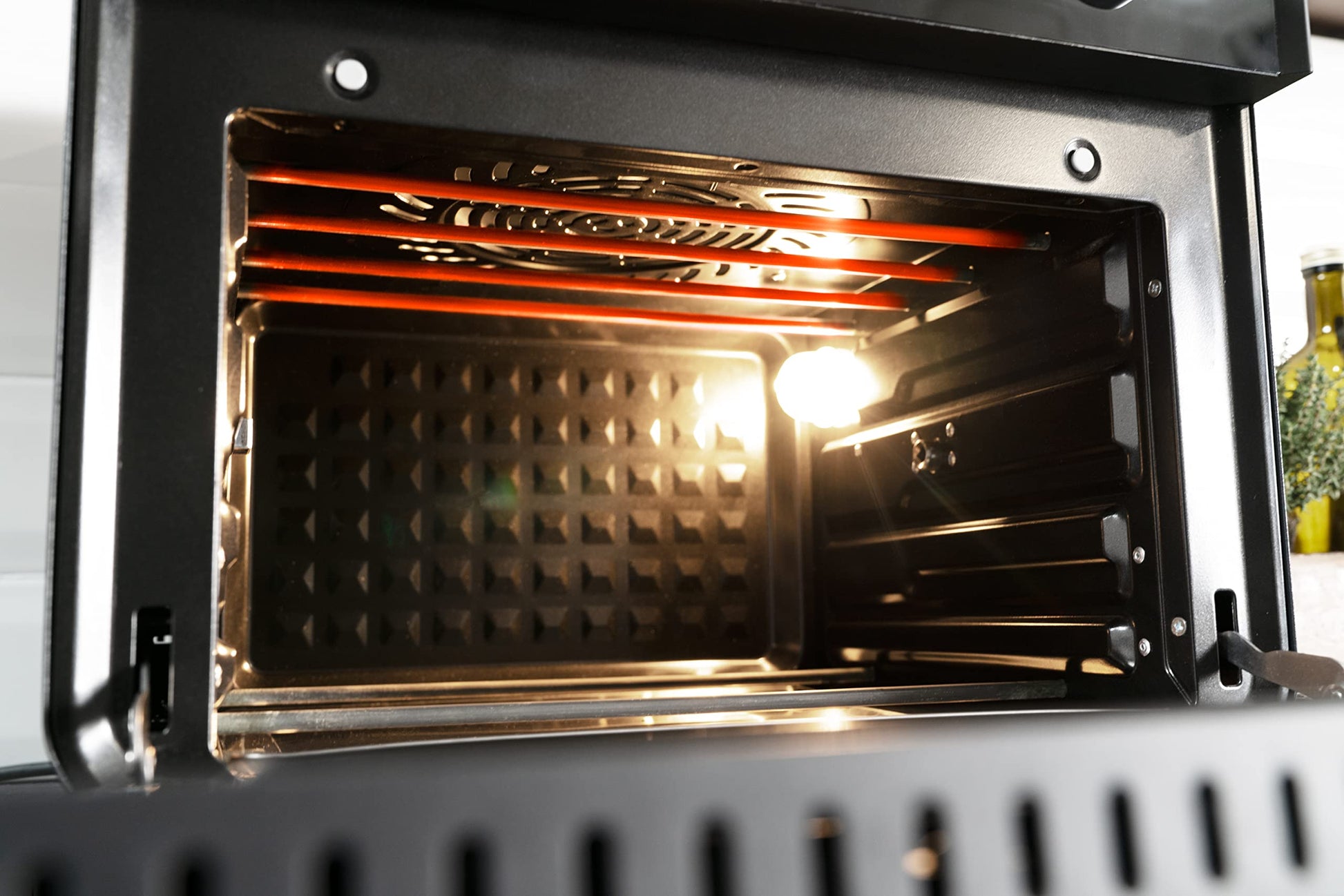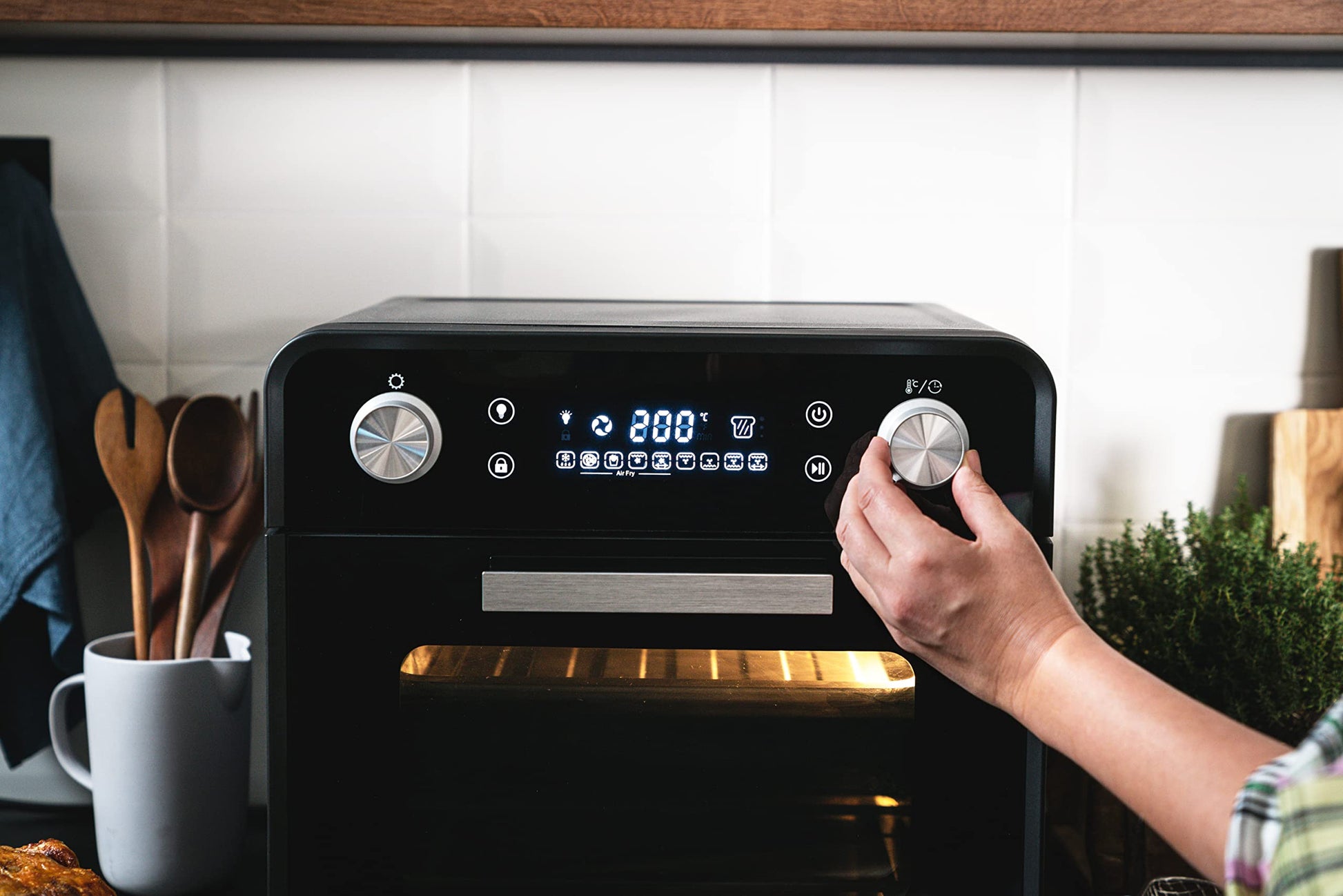 - Der Design Ofen Air Fryer ist ein wahres Multitalent mit 5-in-1-Funktionen: Pizzaofen, Heißluftfritteuse, Mini-Backofen, Grill-Drehspieß und Dörrgerät. Entdecke die Möglichkeiten und bereite köstliche Gerichte in Rekordzeit zu.