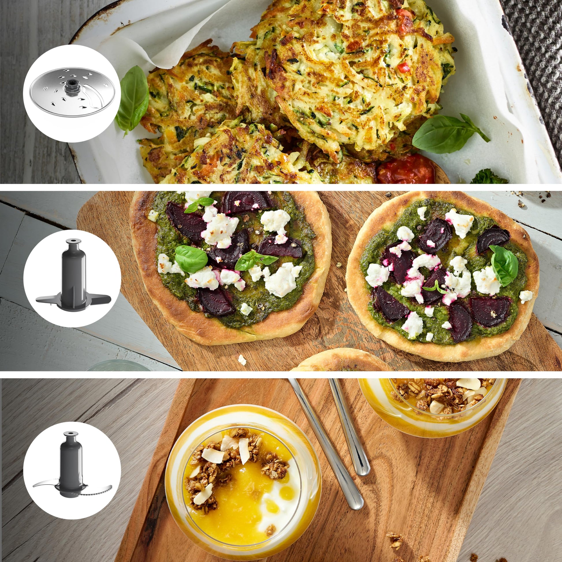 - EXPRESS SERVE: Schneide und raspel deine Zutaten direkt auf deinen Teller - das spart Zeit und der Arbeitsbehälter bleibt sauber