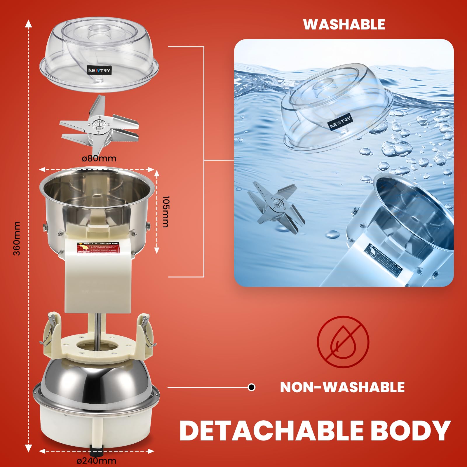 - Einfach zu reinigen und zu pflegen - Das vollständig abnehmbare Design ermöglicht ein schnelles Abspülen nach dem Gebrauch. Die problemlose Reinigung sorgt für einen reibungslosen Betrieb Ihrer Küche.
