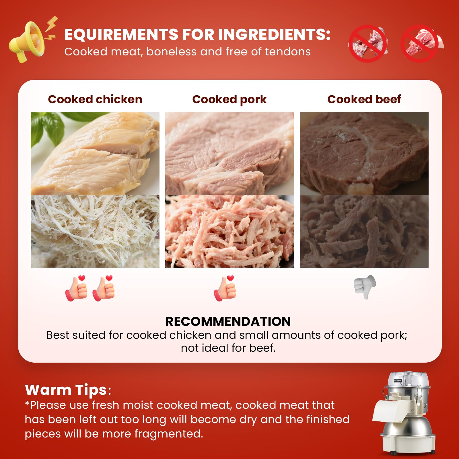 NEWTRY Elektrischer Hähnchen-Zerkleinerer